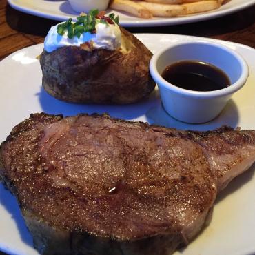 ステーキは14onz、396gあり、ベイクドポテトも普通の2倍ぐらいの大きさでまさにアメリカンという感じです。