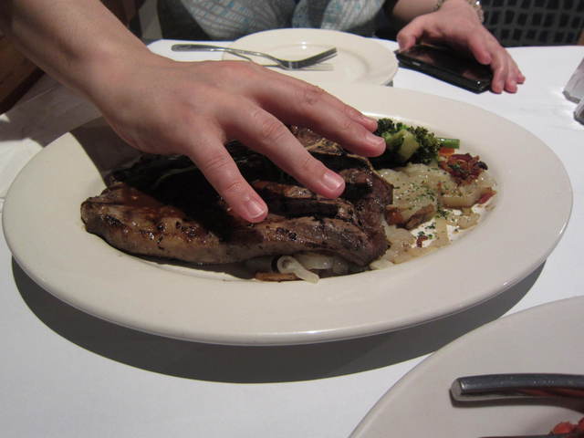 4品目が私の手のひらよりもでかいサーロインステーキ。