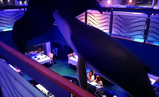 海底がコンセプトなので、テーブルの前にはイルカが泳いでいます(笑)