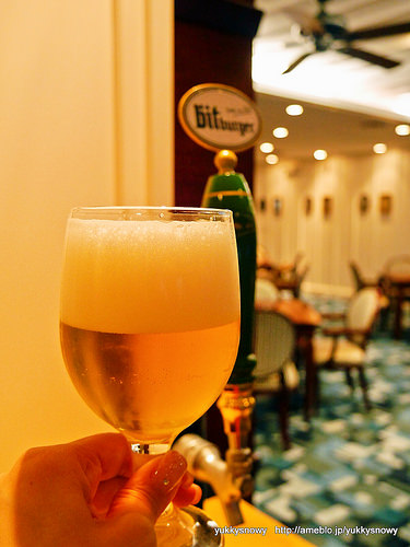 赤・白ワインのカラフェにビールが登場します。
