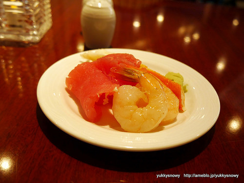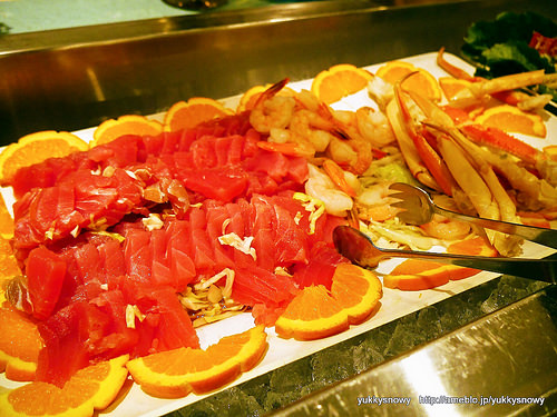 当日のシーフードはマグロのお刺身、海老に蟹!