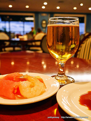 ハッピーアワー アペタイザー マグロ、エビ、蟹、ビール