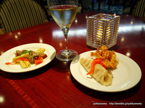 スナック、お刺身、シュウマイなどの点心やサラダにから揚げなど、これからのディナーを盛り上げるアペタイザーとお酒が楽しめる、大人の時間です。