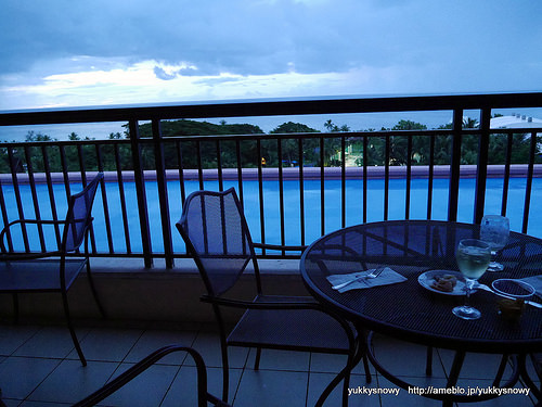 テラスからはウォーターパーク、タモン湾が見渡せます。