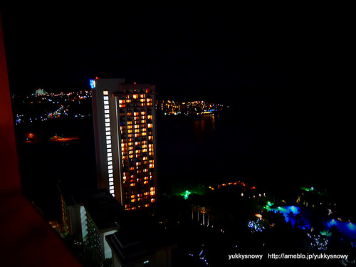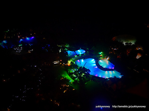 夜はプールがライトアップされて幻想的な雰囲気になります。