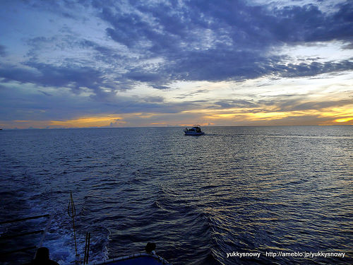 ゆったりと、海に沈んでいく美しい夕陽を鑑賞しました。