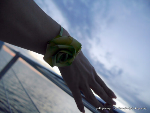 女性には、お花の形に編んだブレスレットを作ってくれます。
