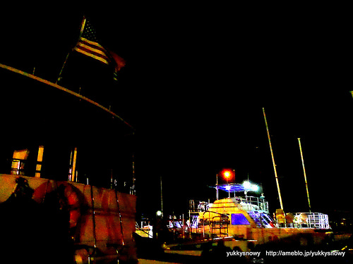 停泊し、船内の電気が消えると月・星だけの世界に。