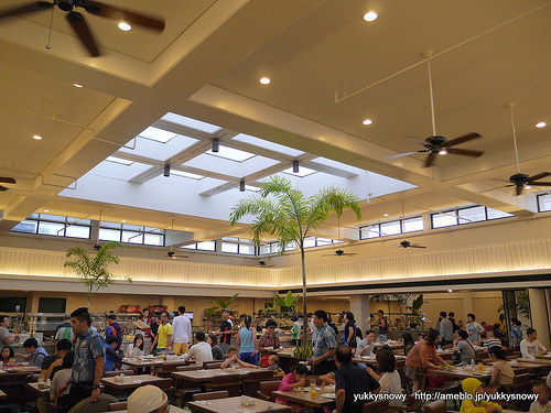 全部で550席もあるという広いレストランは上からの光が差し込んで、南国アメリカンリゾートな雰囲気です。