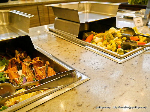 フードが並ぶコの字型やアイランド型のビュッフェバーにドリンクバー、スープバーがあります。