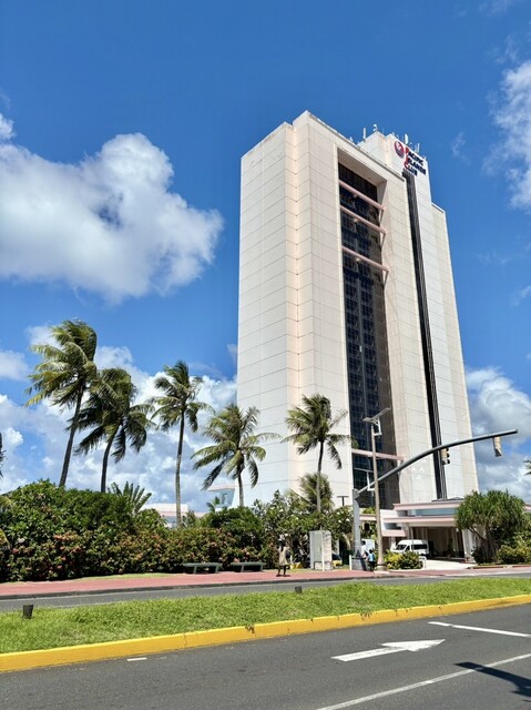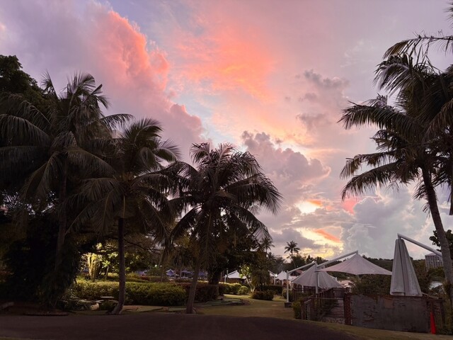 PICホテルのガーデンからの景色、ジム、プール、アーチェリー、テニスコート等いろいろ楽しめます♪