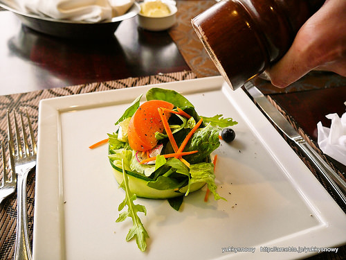 ランチのサービスサラダとは思えない、凝った盛り付けのサラダです。