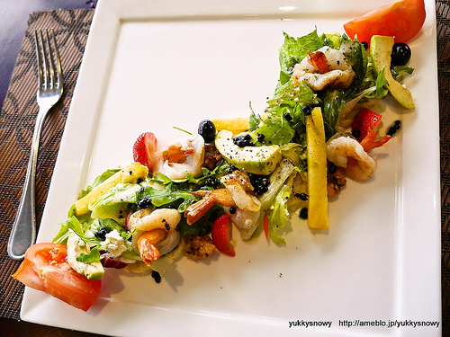 Shrimp Crostini and Petit Saladas 海老のクロスティーニ プチサラダ バルサミコパール