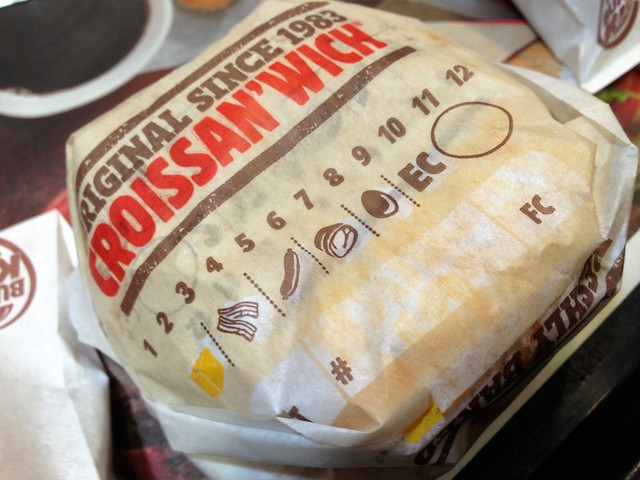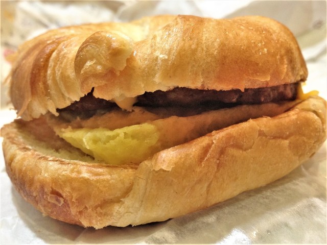 クロワッサンバーガーはバターたっぷりなので実に上質、ど真ん中にチーズが乗っていて肉と玉子の一体感が最高♪