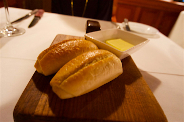 さすがに胃も疲れてきているので、ステーキとグラスワインのみの注文です。パンはサービスね。