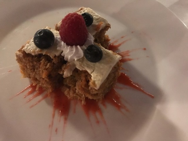 デザート:パイのストロベリーソース添え。パサパサで素朴