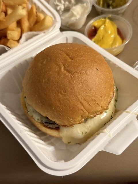 今回は数種類のチーズとマッシュルームのバーガーです。