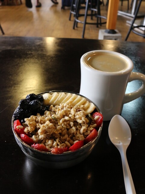 アサイーボール、コーヒーをかち込んで、朝から動けます。