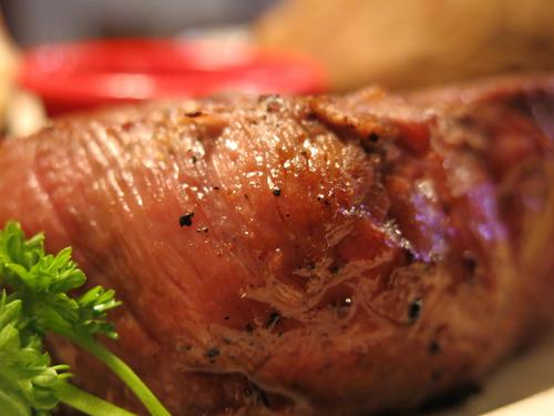ここで、失敗~~アメリカンビーフはレアでは食べられません・・もう一度焼き直して貰いました^^