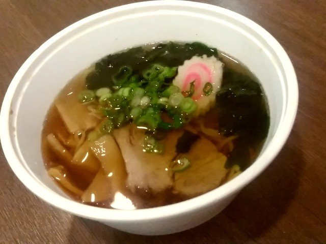●醤油ラーメンは、発泡スチロールの容器で提供されました。