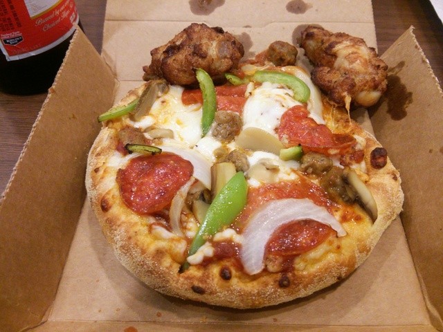 ペパロニ、トマト、モッツァレラチーズの超普通ピザにしたけど本当においしくて