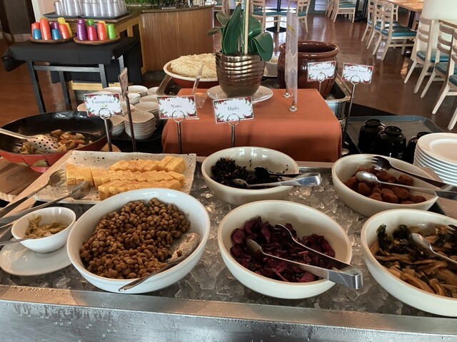 ビュッフェには和食も。納豆や漬物の類、カレーライス、そうめんなど。
