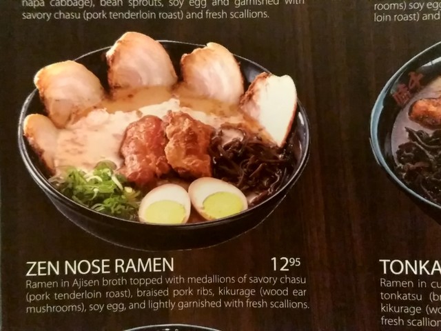 【麺研究】ZEN NOSE RAMEN $12.95+ビール(Miller Light)$3.50