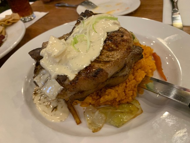 ステーキが結構美味しく、牛だと思えば豚でしたが(;^_^A goodです。