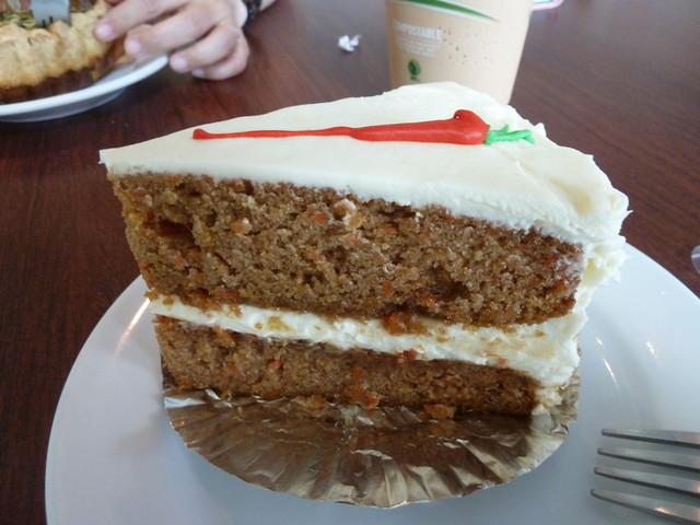 ほどなくしてキャロットケーキ登場。結構大きいです。頂くと甘い味が口の中一杯に広がります。またケーキの中の人参の甘さも感じます。これは美味しいケーキです。元々キャロットケーキが好物のカミサンももちろん大満足。アメリカのキャロットケーキは日本のとは違い、しっかり甘くしっかり味わいがあります。チャイを飲みながら楽しみました。