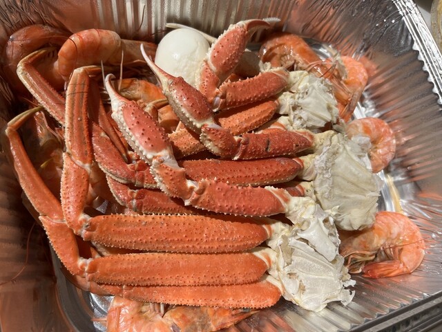 ワイルドにシーフードを手掴みで。本店はカウンターの後ろに蟹とロブスターのMarket price (時価)が表示されており残念なことに今日はKing(タラバ)は売り切れ。3種を選ぶコンボは食べ切る自信が無いし、海老と蟹が食べたかったので単品でSnow crabとShrimp、ガーリックソースの辛さミディアムをテイクアウトし約$50。美味しいけど行儀良く食べるのは無理で、食後はガーリック臭くなります...