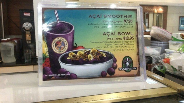 日本語のメニューが提示されていたので、注文は簡単でした。おすすめのパンケーキと、アサイースムージーを注文して、ガラス張りのテーブルに座りました。