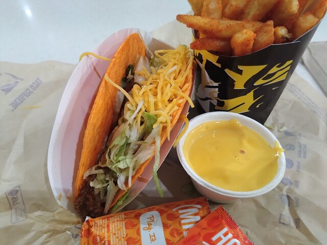 • Taco Bell - ドリトスローカルタコス$3.09、ナチョフライ$3.69