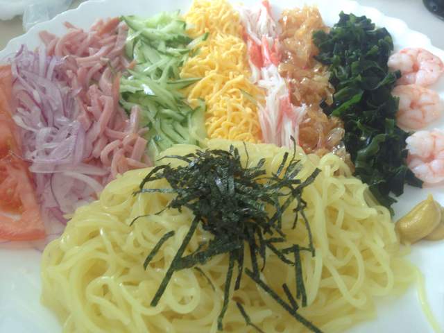 冷やし中華はグアムでNo1の店だと思います、ただ私のお気に入りは麺好み、丼ぶりが二つに分かれていてそばとうどんが一度に同時に食べられるというお得なメニューです。そばとうどんでスープが違うのも嬉しい気遣...