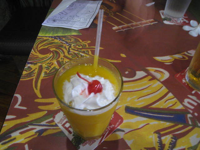 マンゴー スムージーとビールを注文。