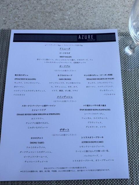| ドレスコード | スポーツウェア、水着、ショートパンツ、タンクトップ、ビーチサンダルを避けたリゾートカジュアル |
