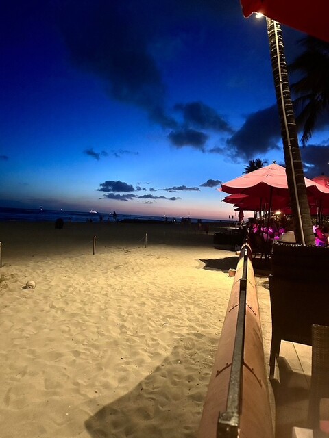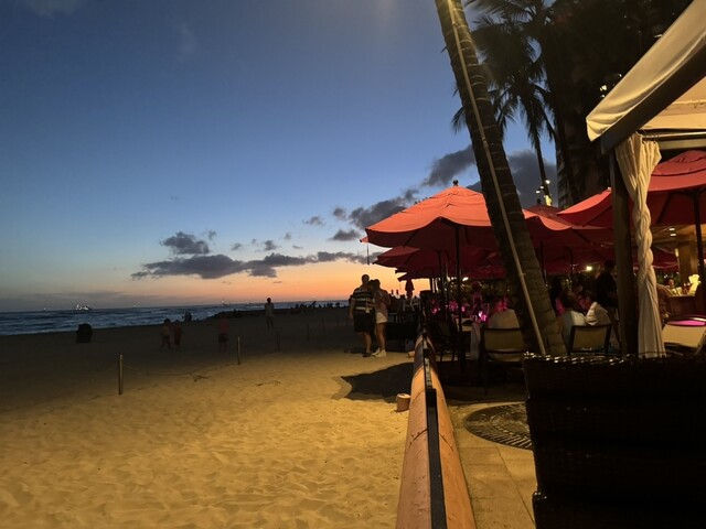 目の前がビーチ、ダイヤモンドヘッド、ホテルが見れて雰囲気抜群です。
