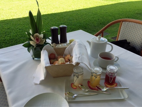 本日はOrchids(オーキッズ)でアフタヌーンティー!ハワイらしい雰囲気の中で紅茶と軽食が気軽に楽しめます。