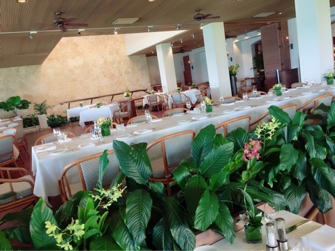 ハレクラニのオーキッズは、海を眺めながらハワイ気分で食事できる、アフタヌーンティーやサンデーブランチで人気のオーシャンビューレストラン。