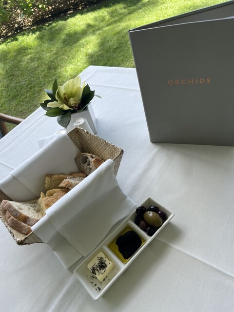 そんな朝を更に贅沢にしてくれるこちら、オーキッズで朝食です。テラスのお席に案内していただき、目の前の海もお庭もプライベート感満載で感動!本当にとても静かで...