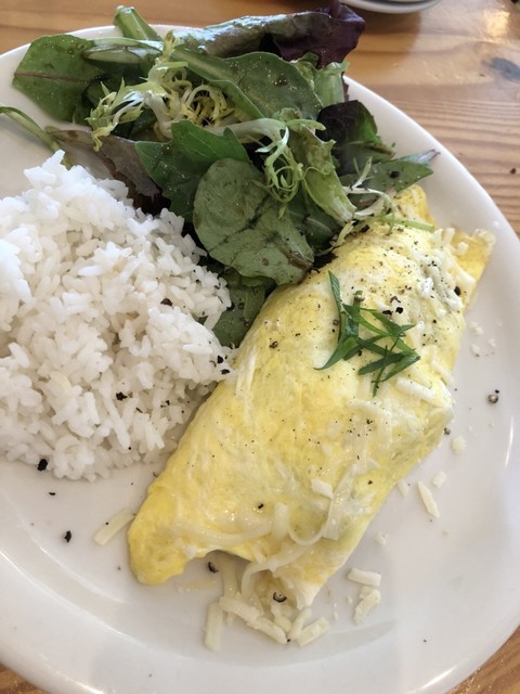 オムレツの中身は自家製ベーコン、マウイオニオン、クリュエルチーズ、ポテト、マッシュルーム