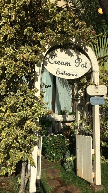 クリームポットはワイキキの西側にあり、カラカウア通りから運河方面に入った場所にあるハワイアンモナークホテルワイキキの1階です。