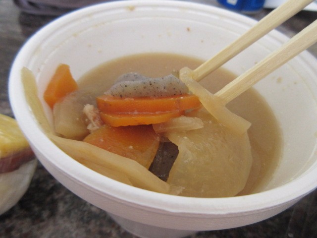 豚汁は具沢山の豚汁、唐辛子も付いて来たんでピリ辛にしていただきました。