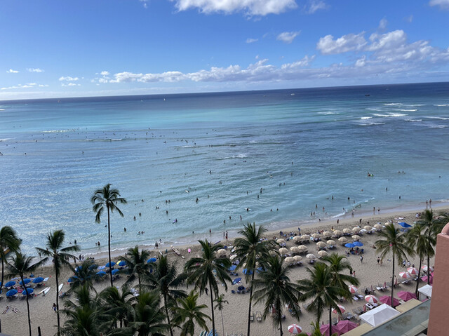 タワーはヒストリック棟より広く、オーシャンビューで、さらにラナイが広いので到着早々にゆっくり過ごせた。