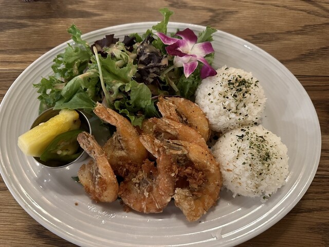 ハワイお馴染みのロコモコや、ガーリックシュリンプなど定番メニューを取...