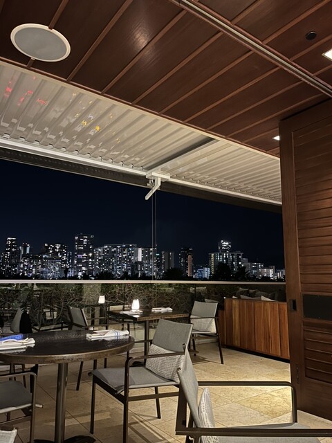 大人の雰囲気が漂うシックなインテリアが印象的。開放的なテラス席からは、ワイキキビーチや緑のフォートデルッシー、夜はホノルルの夜景を見渡すことができます。