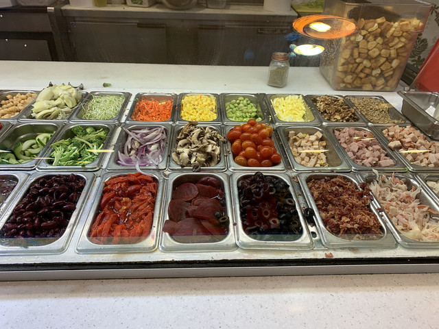 20種以上のトッピングが選べるサラダ、各種握りや巻き寿司に