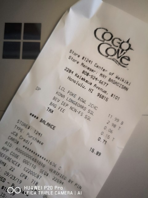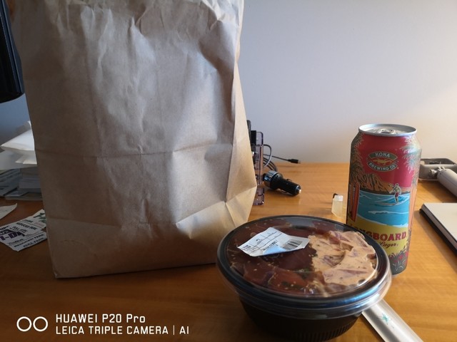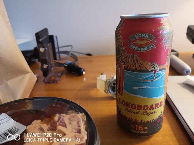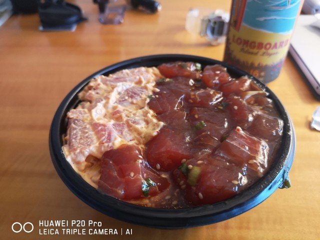 ポキボウル(丼)を持ち帰りホテルの部屋でロングボード飲みながら突っつく^^