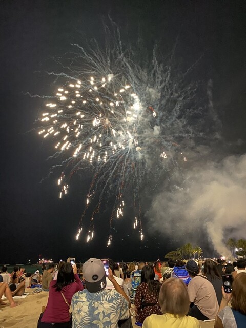 今日は金曜日なので、19:45からHilton Hawaiian Village近くから打ち上がる花火である。日本の花火のように長時間開催されるものではないので、時間前にはHilton Hawaiian Villageのビーチに行きたい。