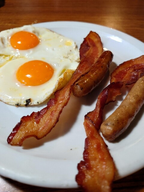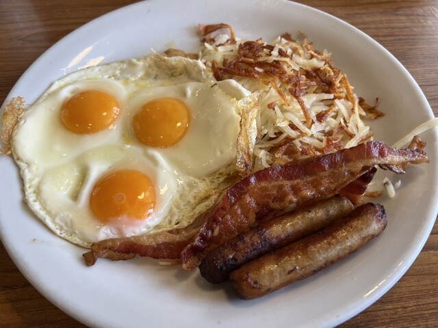 パンケーキのセットを注文しました。値段は日本円で2500円くらい、、、日本だとホテルの朝ごはんが食べられるレベルですね。