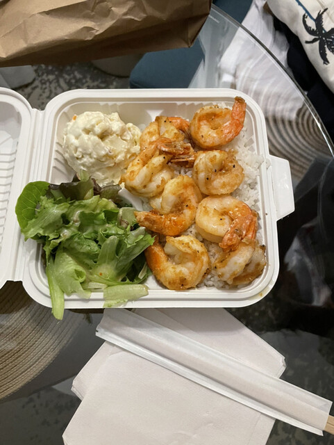 ノースショア(North Shore)のガーリックシュリンプと違ってエビの皮が抜けてあるので、食べやすい。